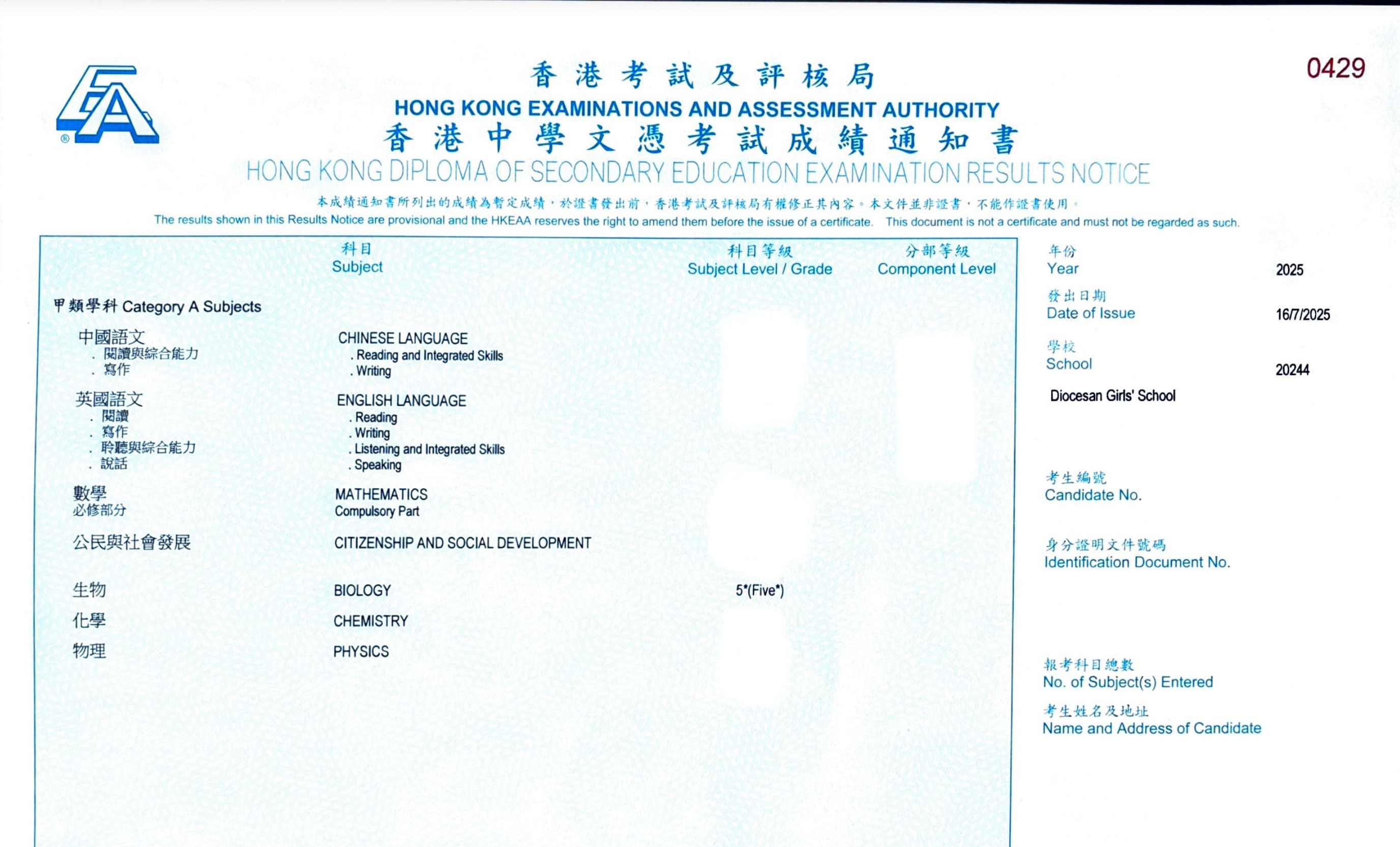 中四剛剛開始接觸DSE Bio的時候,面對測考只懂死記硬背書本知識,一直未能掌握到答題技巧。直至師姐介紹,得知Miss Wong能幫助我深入淺出地學習Bio。Miss Wong擁有豐富教學經驗,以自家設計的筆記輔助教學,總能將複雜的概念簡單化,令我輕易明白每個課題的要點。另外,Miss Wong亦會以圖像和圖表去解釋抽象的概念,幫助我以較簡單的方式理解內容。Miss Wong也教授了不同答題技巧,助我有信心地應付學校考試及DSE,使我在兩年間從D躍升至A,並於DSE取得5*的成績。謝謝Miss Wong!